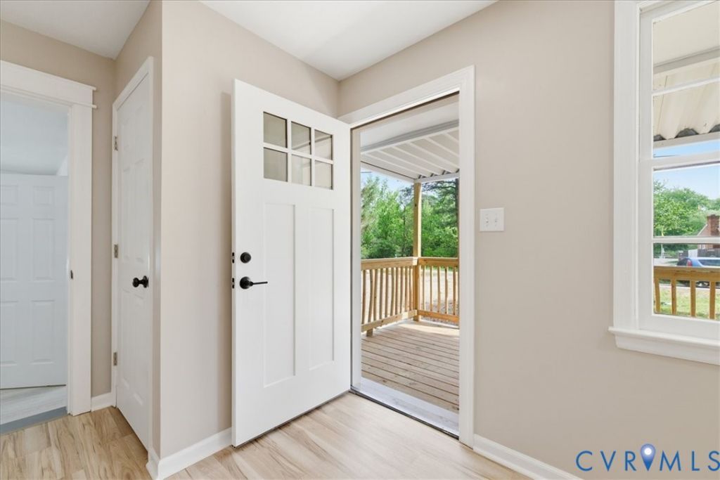 Welcome to 5306 Sterling Rd in North Dinwiddie-this beautifully renovated 4-bedroom, 2-bath home offers the perfect blend of style, space, and functionality! Featuring an open-concept split ranch floor plan, this home provides privacy with a spacious primary suite on one side, complete with a full en-suite bath and dual closets, and three additional bedrooms are located on the opposite end. The updated kitchen is a standout, showcasing a peninsula island with bar seating, farmhouse-style deep sink, stainless steel appliances, granite counters, and crisp white cabinetry. Enjoy the convenience of a huge utility room with washer and dryer included, plus a versatile mudroom with a built-in drop zone-perfect for an office or everyday organization. Three bedrooms feature new cozy carpet, while the main living areas boast new durable LVP flooring. Step outside to a brand-new, large covered front deck, ideal for relaxing or entertaining. Additional upgrades include fresh paint inside and out, all new exterior doors, all new fixtures, a new roof, and new plumbing for peace of mind. Situated on a spacious lot, the property offers a large backyard, ample driveway parking, and a detached shed for extra storage. Don't miss your opportunity to own this move-in ready home with modern updates throughout!